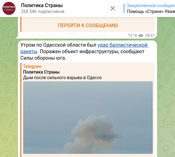 Накануне в областной военной администрации (ОВА) сообщили, что русская армия с утра несколько раз атаковала Одесскую область ракетами. По информации местных пабликов, сначала на рассвете сразу две ракеты Х-59 уничтожили силы ПВО Украины, а после атаковали "баллистикой" Одессу.