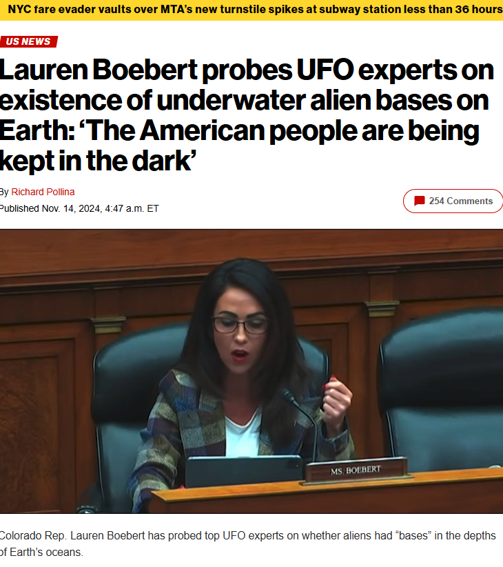 Так, газета The New York Post сообщала: конгрессвумен Лорен Боберт заявила, что информацию о таких опытах скрывает Пентагон с Белым домом заодно. Кажется, дама явно познакомилась с сериалом "Секретные материалы", где затрагивалась эта тема. И слишком серьёзно всё восприняла.