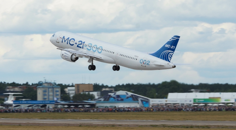МС-21 ("Магистральный самолёт XXI века") - российский среднемагистральный узкофюзеляжный пассажирский самолёт. Предполагается, что он составит конкуренцию китайскому самолёту Comac C919, а также авиалайнерам Boeing 737 MAX, Airbus A220 и Airbus A320neo. Первоначально предполагалось, что доля отечественных комплектующих для МС-21 составит 38%, однако правительство поставило задачу довести этот показатель до 97% к 2022 году, чтобы практически не зависеть от импортных поставок.
