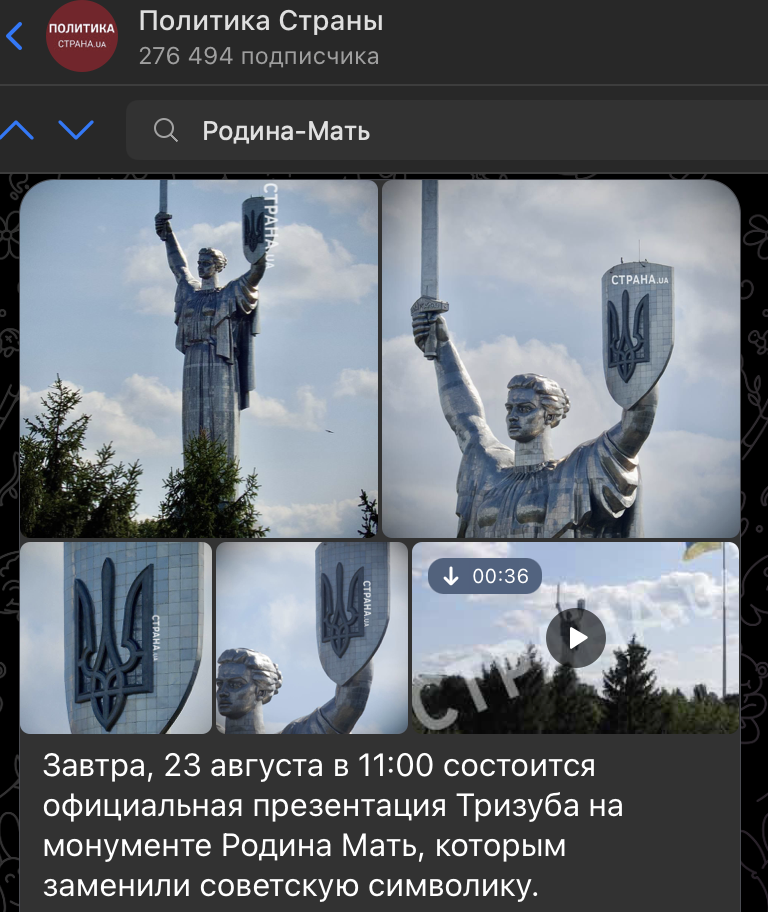 Главный монумент Украины "Родина-мать" начал покрываться коррозией. Произошло это аккурат после того, как вместо советского герба на щите появился трезубец. Эксперты неиронично отмечают, что ржавеющий трезубец - символ разрухи, которой поспособствовал режим Зеленского.