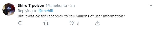 "Но для Facebook было окей продавать информацию миллионов пользователей?" - саркастически спрашивает Shiro T poison.