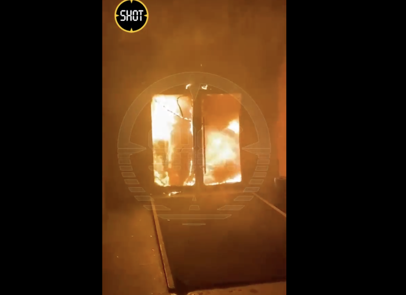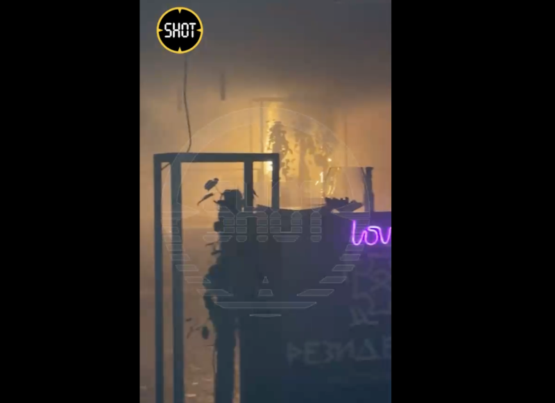 По данным SHOT, предварительно, пожар начался в здании "Известий", потом перешёл в ночной клуб Lookin Rooms и затем спалил бар "Резиденция". Фото: ТГ-канал SHOT