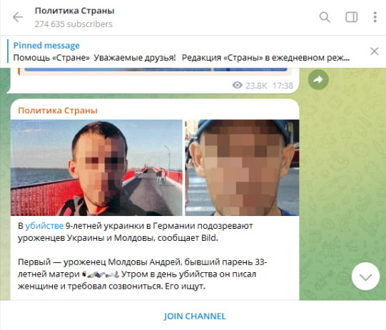 По данным западных СМИ, в убийстве ребёнка подозревают уроженцев Украины и Молдовы.