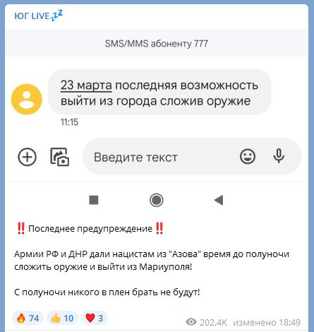 "23 марта последняя возможность выйти из города, сложив оружие", - гласит текст.