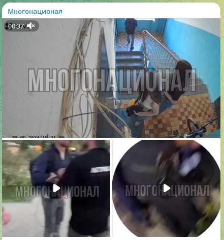 Мигрант преследует школьниц на лестничной клетке. Фото: скриншот видео с Telegram-канала "Многонационал"