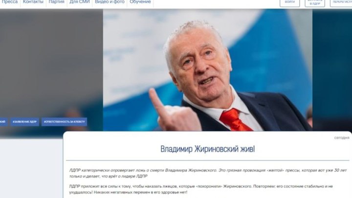 Сайт ЛДПР заработал: партия накажет лжецов, которые «похоронили» Жириновского