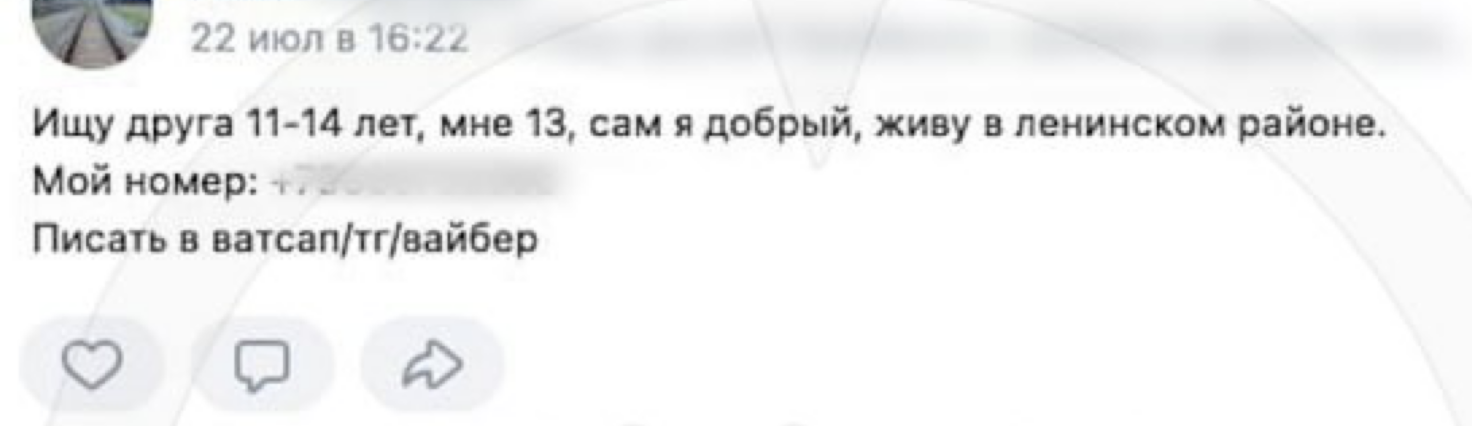 13-летний подросток в июле публиковал сообщения в группах для детей 11-14 лет, где рассказывал о себе и делился своим номером телефона.