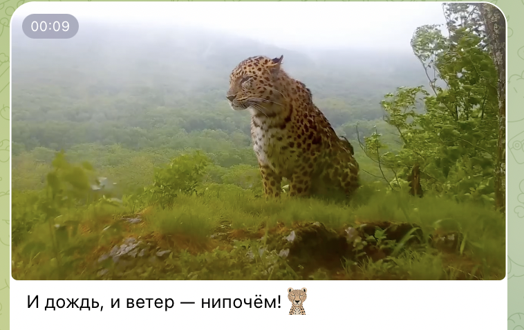 Национальный парк "Земля леопарда" в Приморье опубликовал любопытное видео с редким эпизодом из жизни краснокнижного хищника. Вопреки привычному осторожному поведению, дальневосточный леопард был замечен во время дождя и сильного ветра.