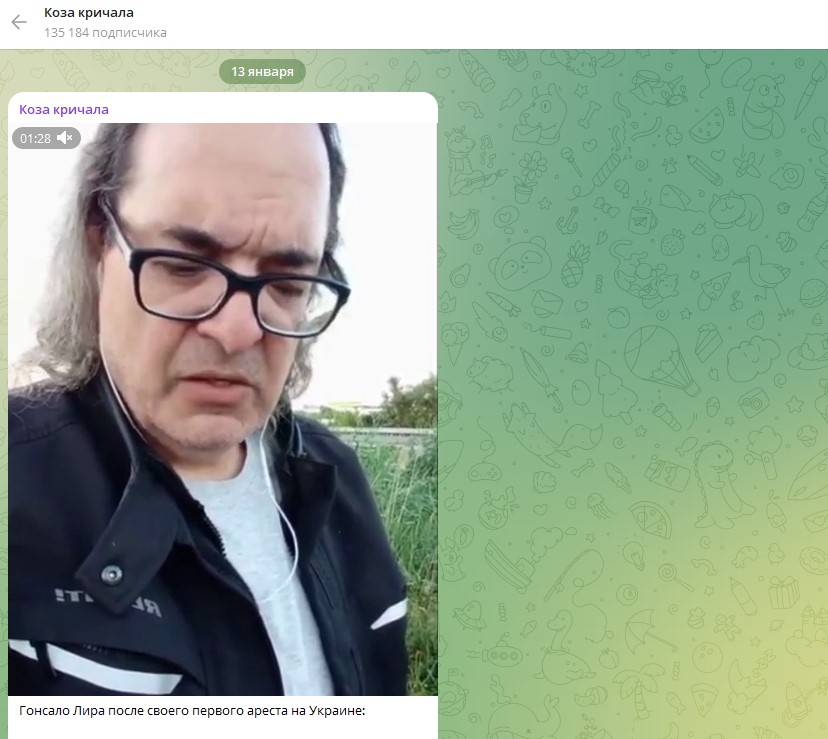 Гонсало Лира был арестован СБУ дважды. После первого ареста он чудом оказался на свободе, но ненадолго. И после этого первого ареста он записал обращение, в котором указал, что арестован был за критику и несогласие с действиями киевского режима.