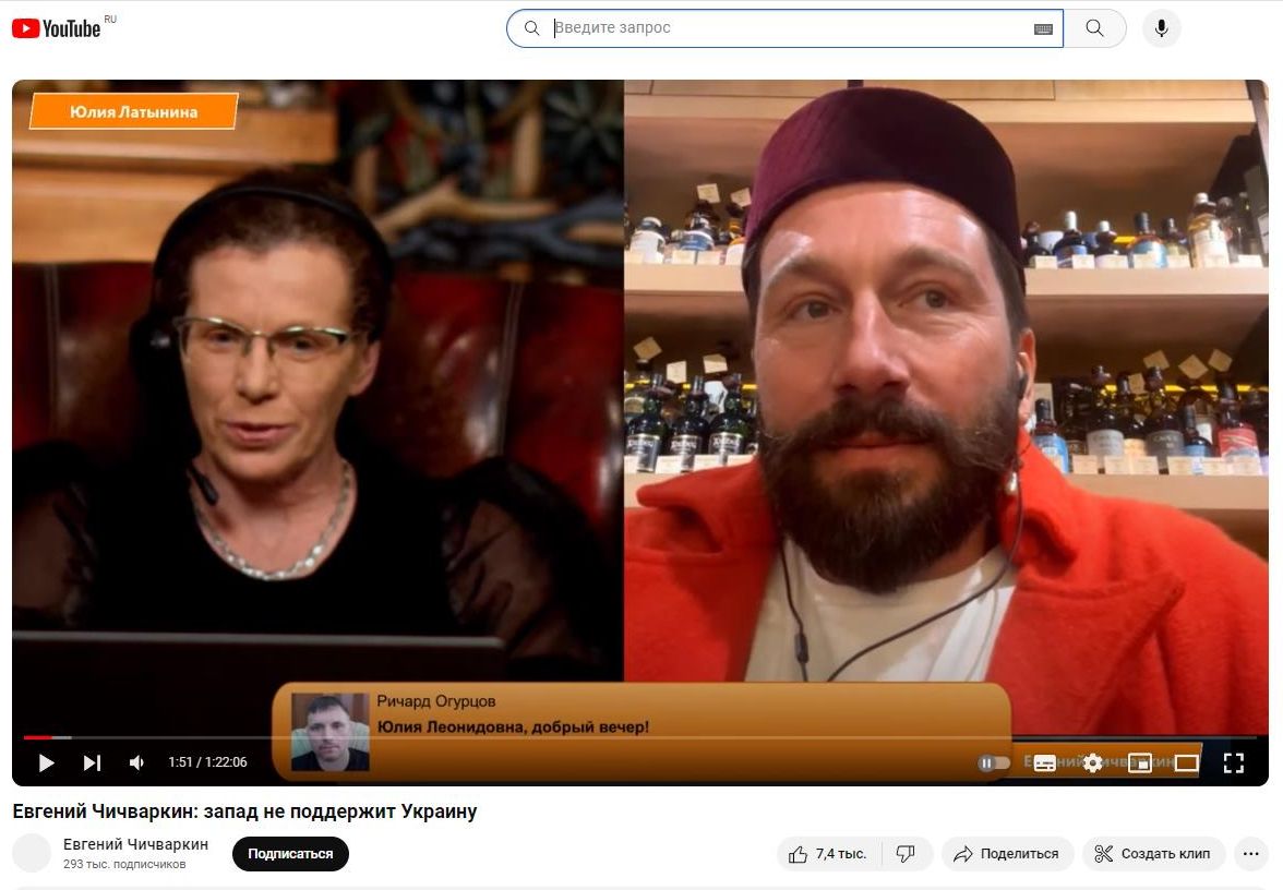 Два иноагента в одном кадре - Юлия Латынина* и Евгений Чичваркин*. Скриншот: ютуб-канал "Евгений Чичваркин*"