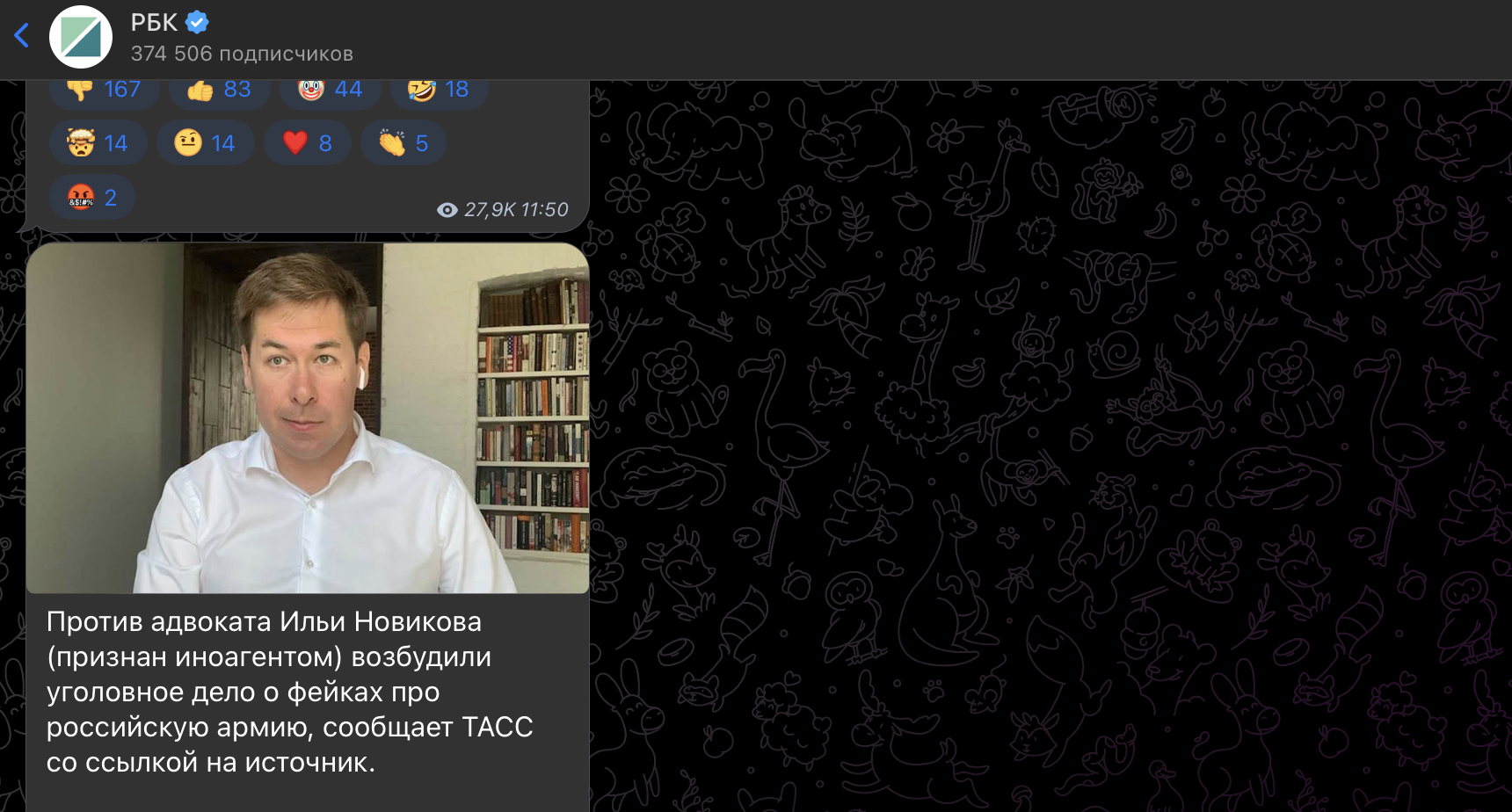 В 2021 Новиков* бежал в Киев, где теперь безвылазно сидит. В июне этого года адвокатская палата Москвы лишила его статуса адвоката "за недостойное поведение".