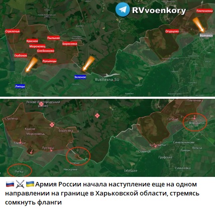Вдобавок появились сообщения, что группировка войск "Север" открыла новое направление и бьёт по ВСУ в районе Зелёного, между Волчанским и Липцевским участками фронта. И это не считая нескольких других направлений на Харьковском участке, угрозу с которых командование ВСУ оценивает как высокую.
