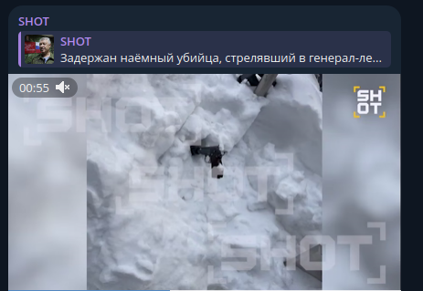 Отдельный интерес вызвали кадры с места преступления. ФСБ показала записи камер наблюдения у подъезда и внутри дома, где произошла стрельба. Также была продемонстрирована неожиданная находка в сугробе - пистолет с глушителем, который, как утверждается, использовался при покушении.