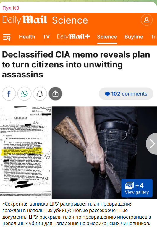 "Секретная записка ЦРУ раскрывает план превращения граждан в невольных убийц", - пишет британское издание Daily Mail Science.