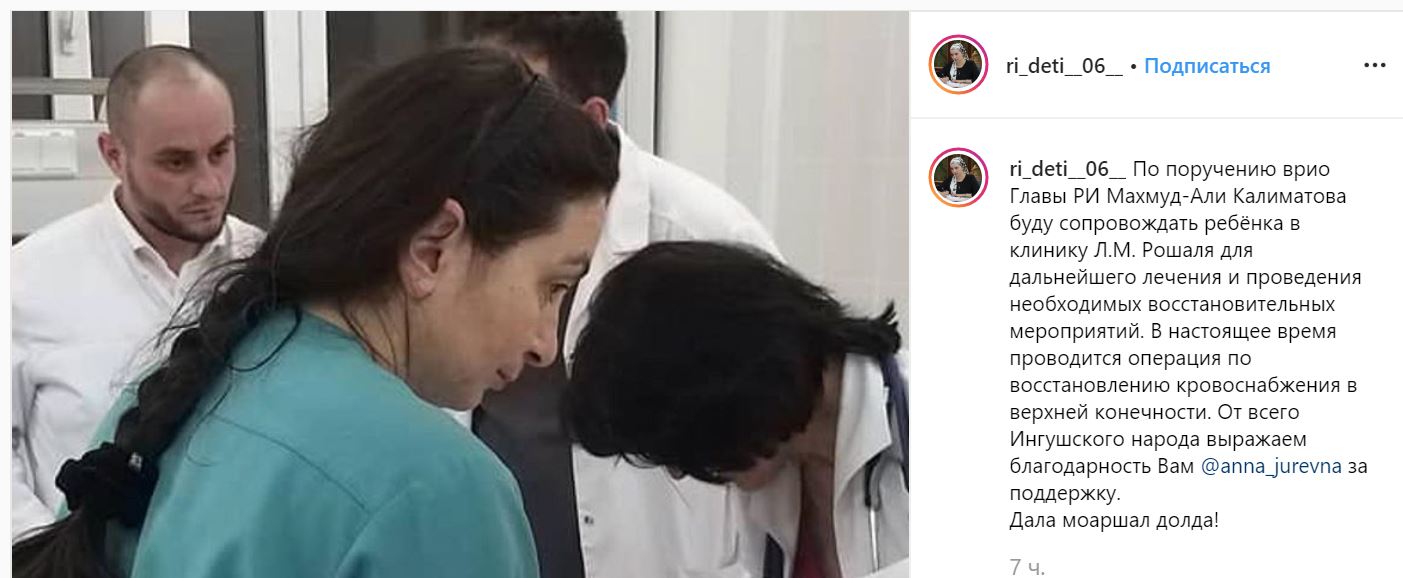 "Девочку до такого состояния довела тётя по отцовской линии. С ней работают правоохранительные органы. Клянусь вам, её накажут по всей строгости", - рассказала в "Инстаграме" уполномоченный по правам ребенка в Ингушетии Зарема Чахкиева.