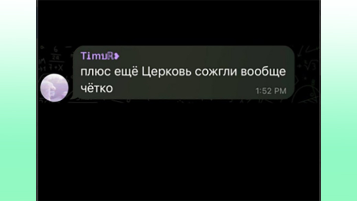 Сожжение церкви радикалы открыто приветствовали. Скрин с ТГ-канала "Мигранты все как есть"