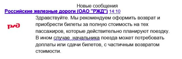 Однако рассказчик сразу привёл аргументы, почему в данной ситуации он прав. Для этого он заранее пообщался с поддержкой РЖД и выяснил, что в том случае, если пассажир, имеющий льготу, не может поехать, то ему рекомендуют оформить возврат билета. В противном случае начальник поезда может потребовать доплаты или сдачи билетов с частичным возвратом стоимости.