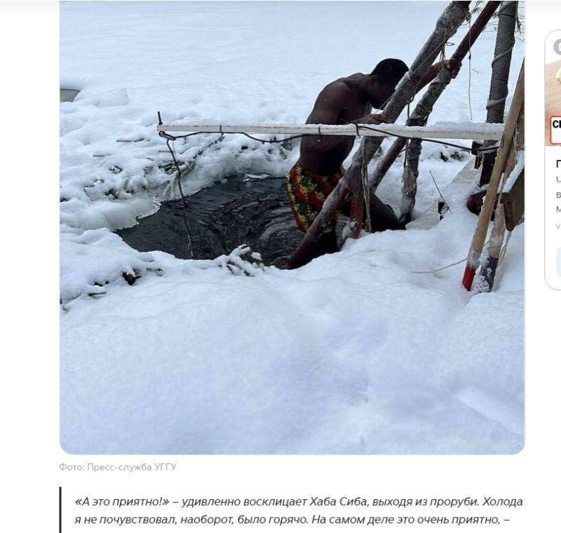 Стоит отметить, что африканцы традиционно проявляют большой интерес к "холодным" забавам и обычаям в России. И на Крещение многие из них не упускают случая искупаться в проруби.