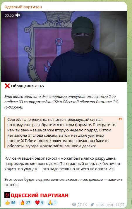 Вполне возможно, что грозное предупреждение одесских партизан связано с этим случаем. Тем более что о сотрудниках СБУ идёт дурная слава палачей.