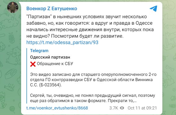 Скриншот: https://t.me/odessa_partizan