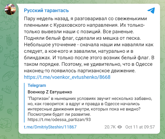 Скриншот: https://t.me/voenkor_evtushenko