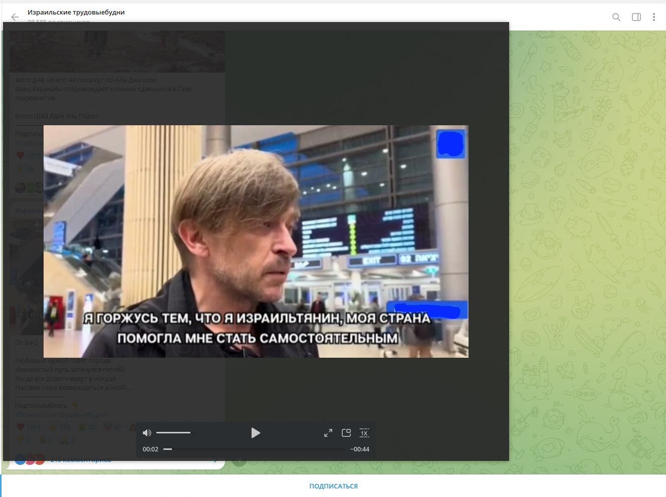 СКРИНШОТ: ТЕЛЕГРАМ-КАНАЛ "ИЗРАИЛЬСКИЕ ТРУДОВЫЕБУДНИ"