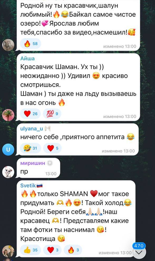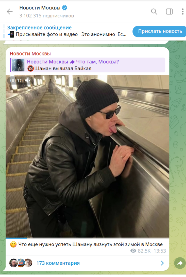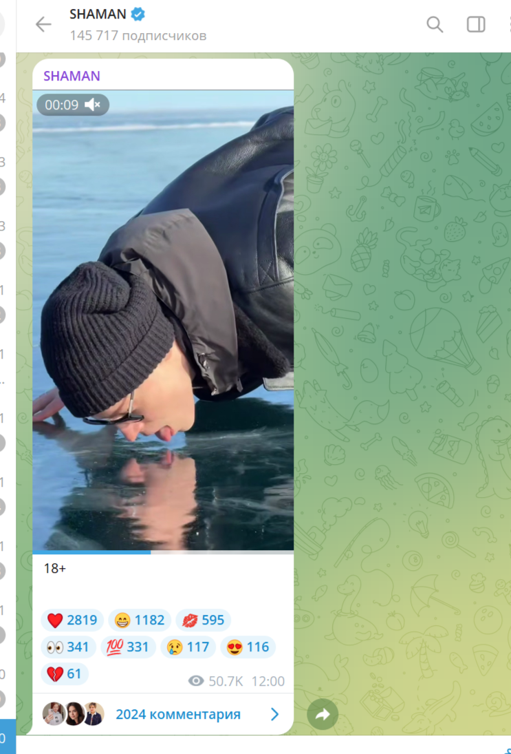 Не будем даже предполагать, почему это видео появилось в телеграм-канале певца Ярослава Дронова, известного нам, как Shaman. Вероятно, это развлекательный контент. Как нам кажется, сейчас интересен не столько сам ролик, сколько реакция на него в сообществе Telegram.
