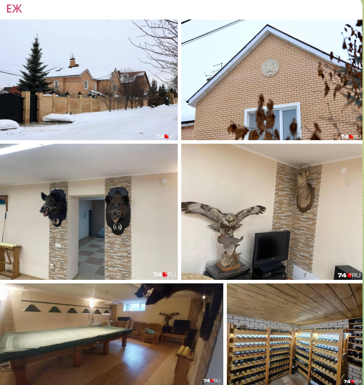 В Сети появились фотографии одного из домов подозреваемого. Это элитный кирпичный коттедж, внутри которого есть своя бильярдная комната и собственный винный погреб. На снимках оперативной съёмки также запечатлены контейнеры из банковской ячейки фигуранта, в которых хранится множество пачек банкнот номиналом в 5 тыс. рублей.