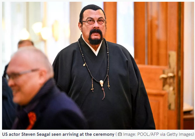 БРИТАНСКОЕ СМИ В СТАТЬЕ ОТМЕТИЛО И БЫВШЕГО АМЕРИКАНСКОГО КИНОАКТЁРА СТИВЕНА СИГАЛА, КОТОРЫЙ БЫЛ ЗАМЕЧЕН НА ЦЕРЕМОНИИ. НЫНЕ ОН - ГРАЖДАНИН РОССИИ. ФОТО: СКРИНШОТ СТРАНИЦЫ САЙТА MIRROR.CO.UK