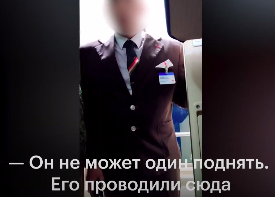 Как он донесёт? Как вы это представляете? Её принесли ребята-военнослужащие и ушли. И человек едет один. Позвать из Питера тех ребят вернуть? Развернуть поезд?
