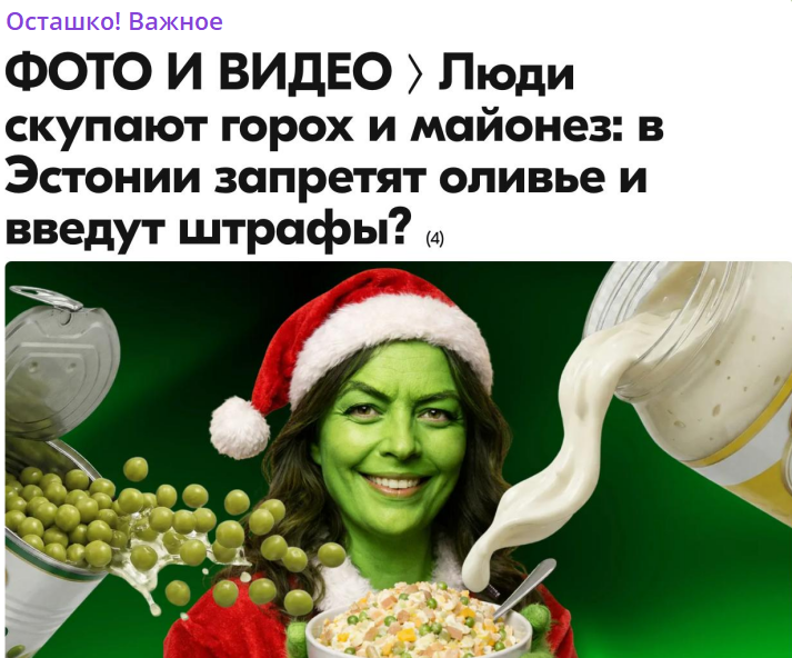 Позже выяснилось, что новость о запрете "Оливье" - это фейк, однако уровень русофобии в Прибалтике оказался достаточно высок, чтобы люди поверили даже в это.