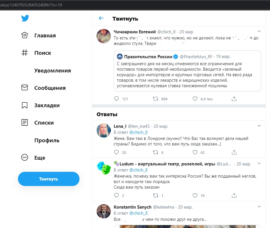 Чичваркину, некогда бежавшему из России, показались необоснованными меры, связанные с коронавирусом в России. К слову, в Лондоне, где сейчас и живёт бизнесмен, ситуация сложнее. Однако Чичваркин предпочитает писать о русских и для русских. На что ему и указали комментаторы.