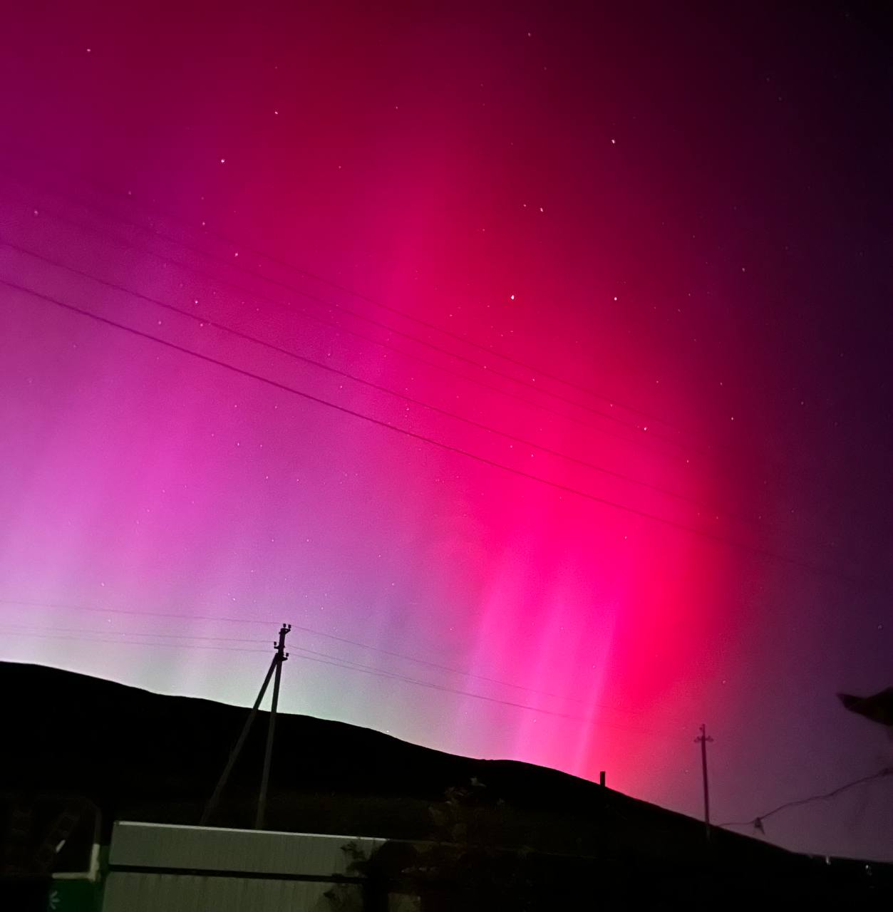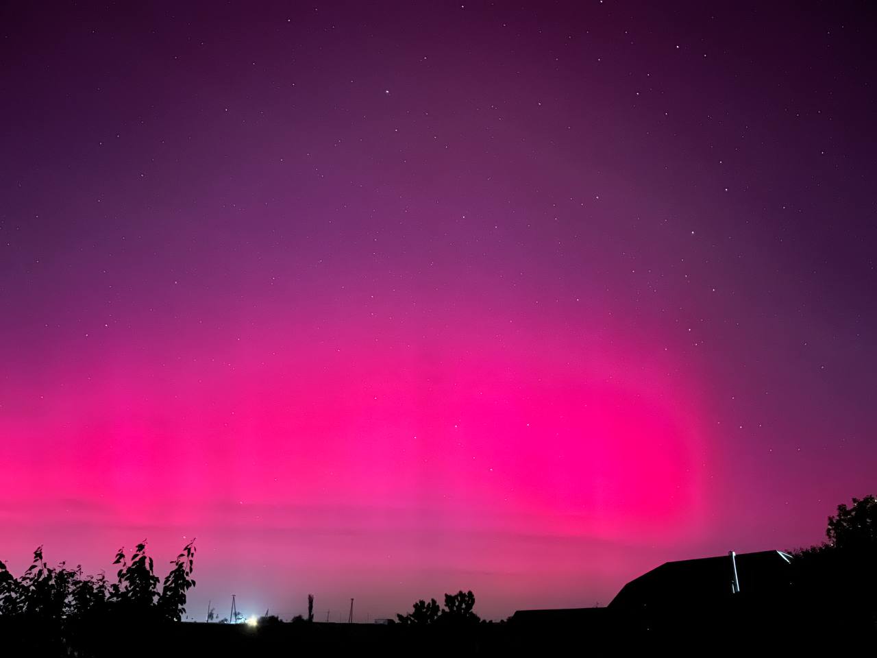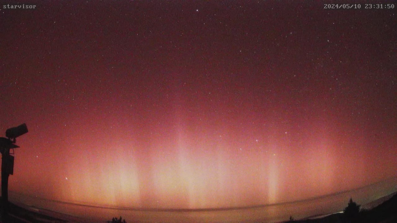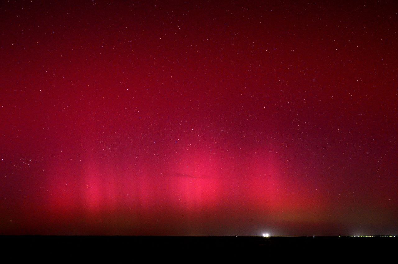 Не обошло стороной северное сияние и Кавказ: там небо окрасилось в красно-оранжевый.