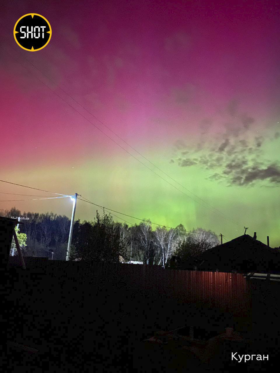 Удивительные столбы зелёного цвета окрасили небо в Кургане.