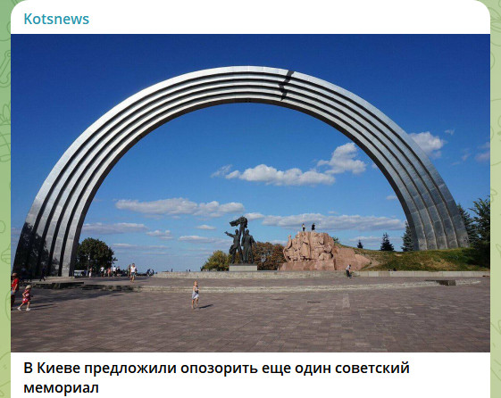 В столицы Украины предложили опозорить еще один советский мемориал - Арку Дружбы народов. Директор украинского Института национальной памяти Антон Дробович заявил, что вместо мемориала можно сделать "какую-нибудь водяную горку" в стиле ЛГБТ*.