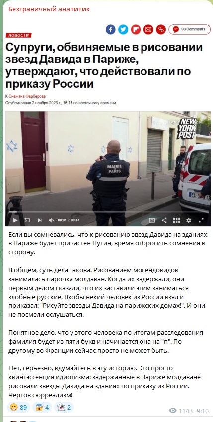 Во Франции задержали двух мигрантов-молдаван, которые рисовали "звёзды Давида" на еврейских домах. Задержанные немедленно объявили, что занимались преступной деятельностью по наущению куратора из России - в Рунете смеются над версией с "путинским следом".