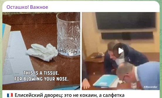 "Когда европейское единство становится неудобным, дезинформация заходит настолько далеко, что выставляет простую бумажную салфетку наркотиками", - возмущаются в Елисейском дворце.