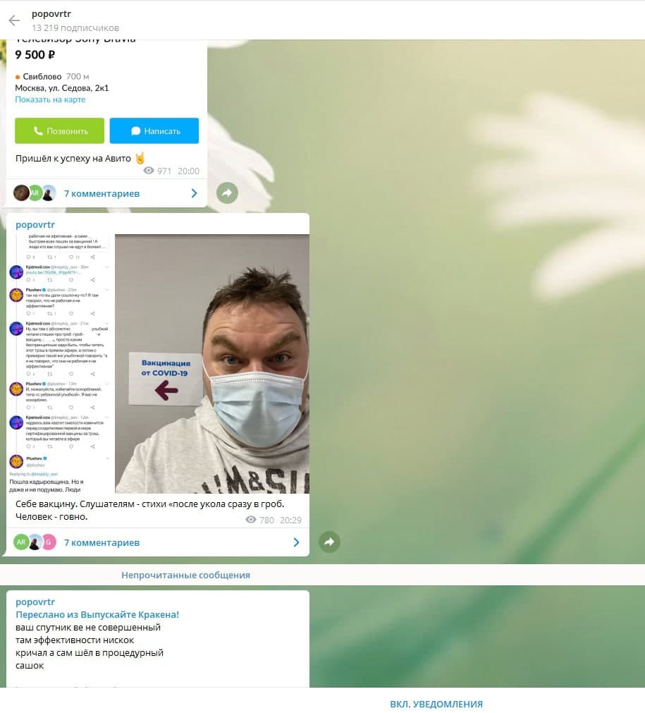 "Российская оппозиция, помахивая гребнями, побежала прививаться "Спутником V", который до этого в ежедневном режиме поливала помоями", - добавляет Сергей Колясников.