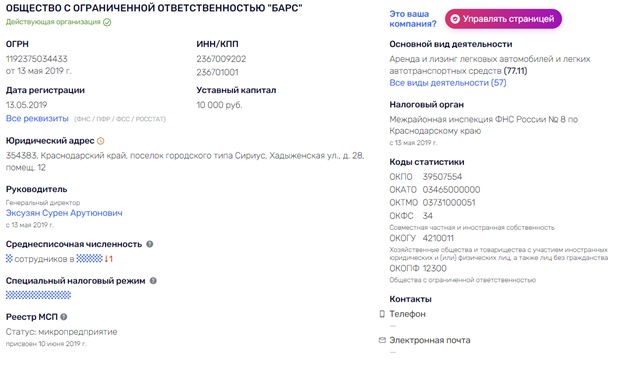 По интересному совпадению на территории храма зарегистрировано некое ООО "Барс", которое занимается арендой и лизингом легковых автомобилей и лёгких автотранспортных средств. Генеральным директором коммерческой компании является Сурен Эксузян: