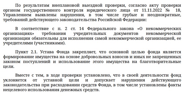В материалах иска содержится масса подробностей о тратах "приюта". В распоряжение редакции Царьграда поступил эксклюзивный документ - Административное исковое заявление о ликвидации юридического лица - Фонда Храма Нерукотворного Образа Христа Спасителя в Имеретинской долине г. Сочи (10-страничный список подозрительной активности), с отрывком из которого можно ознакомиться ниже.