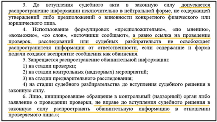 Ограничить распространение "обвинительной информации" предлагается в том числе в интересах руководителей компаний и должностных лиц // Скриншот пояснительной записки к законопроекту