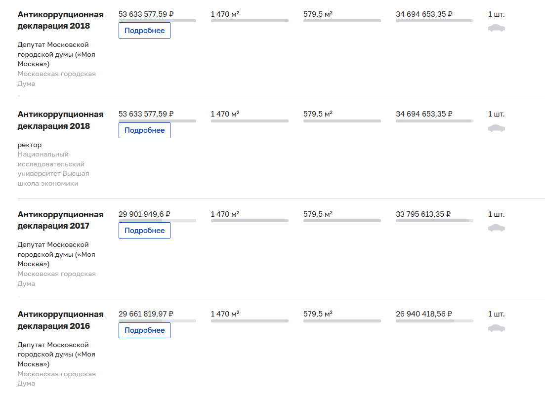 Следующий, 2018 год для Ярослава Кузьминова стал одним из самых удачных. Согласно антикоррупционной декларации, его доход вырос почти в два раза и составил 53,6 миллиона рублей.