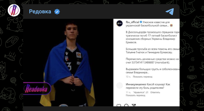 Напомним, в середине февраля в Оберхаузене на двух спортсменов из "страны У" напали с ножами неизвестные из-за их выкрикивания проукраинских лозунгов. По информации СМИ, Владимир Ермаков и Артём Козаченко, которые жили в Дюссельдорфе и играли за местную молодёжную команду по баскетболу, отправились в магазин за кроссовками в тот фатальный вечер, когда всё произошло.