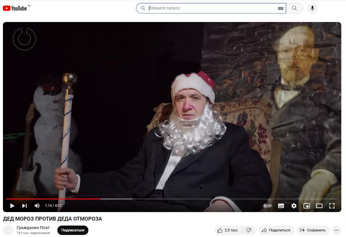 Узнать нелегко, но это и в самом деле Артур Смольянинов*. Скриншот: ютуб-канал "Гражданин поэт"
