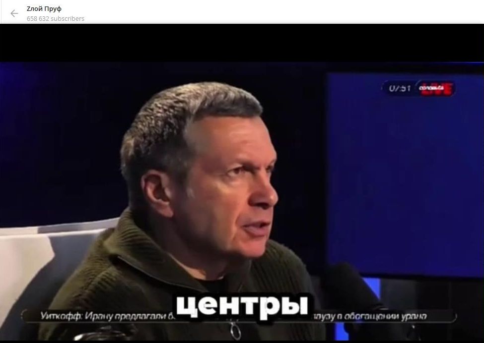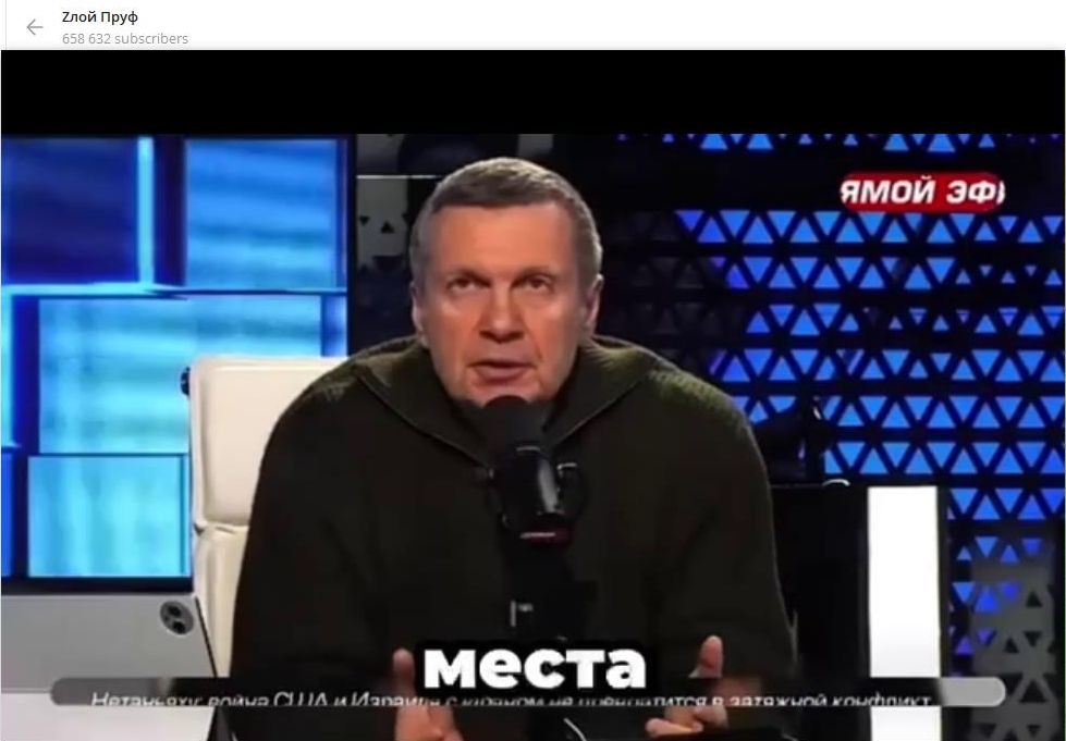 Владимир Соловьёв. Скриншот: телеграм-канал "Zлой Пруф".