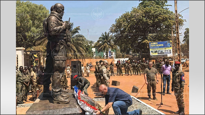 Открытие памятника Евгению Пригожину и Дмитрию Уткину в Банги (ЦАР). Фото: ТГ-канал "Разгрузка Вагнера"