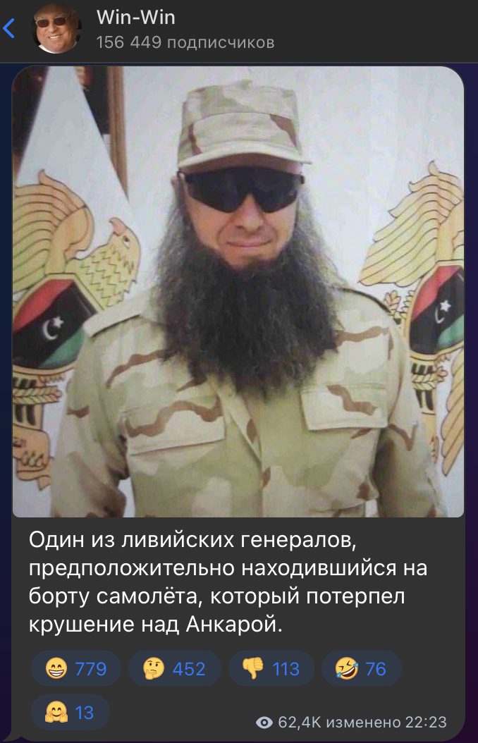 Один из ливийских генералов, предположительно находившийся на борту самолёта, который потерпел крушение над Анкарой.