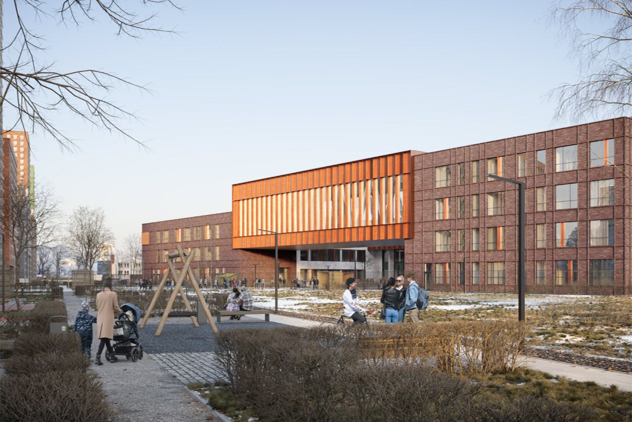 Кроме того, в новой школе, где смогут обучаться 825 школьников, планируются медиатека, просторный зал для мероприятий и удобные пространства для отдыха. Перед главным входом предполагается обустройство площадки для проведения школьных линеек и велопарковки, на территории обустроят "спортивное ядро".