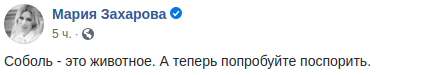 "Соболь - это животное, - отметила Захарова. - А теперь попробуйте поспорить".