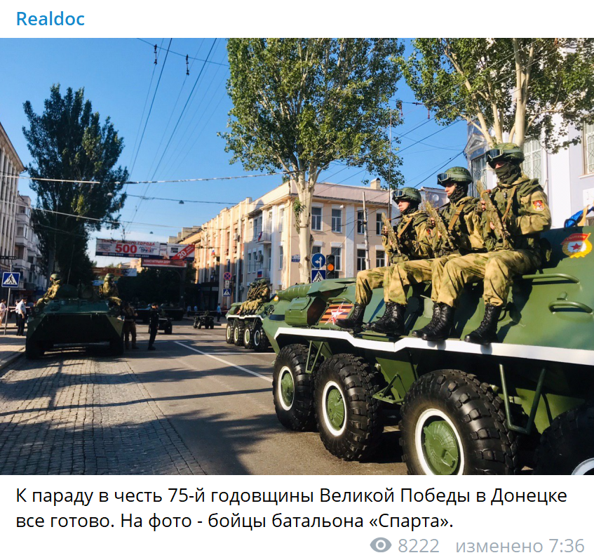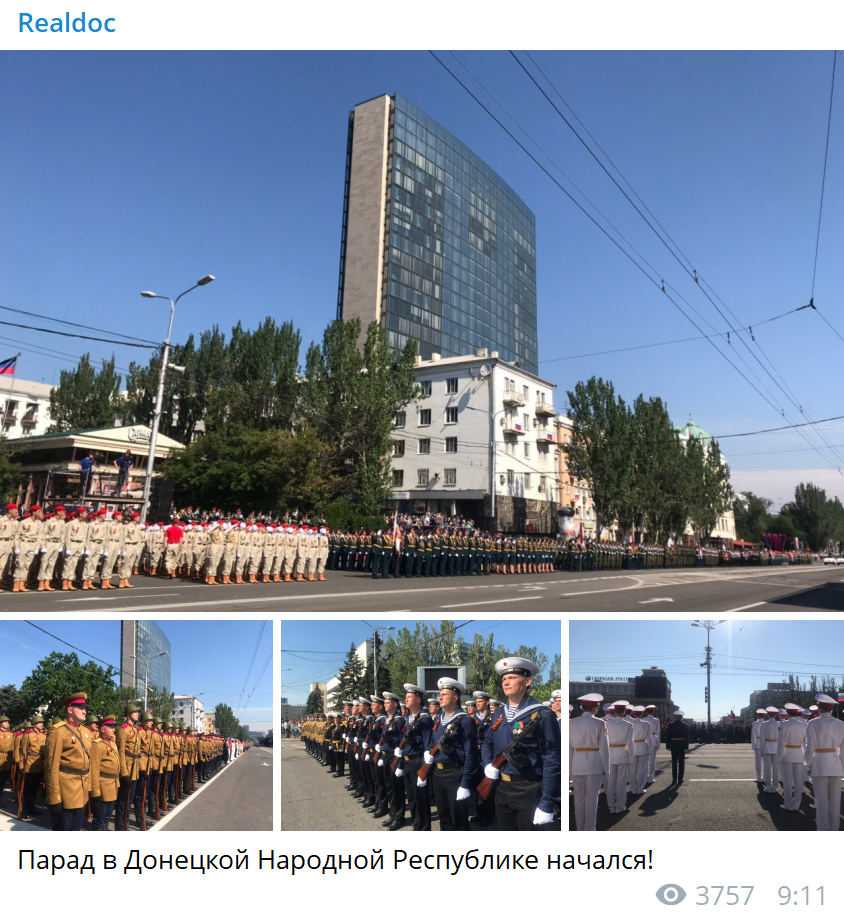 В эти минуты в Донецке проводят торжественный Парад в честь 75-летия Великой Победы. В церемонии принимают участие две с половиной тысячи бойцов, а также задействовано более сотни единиц военной техники.